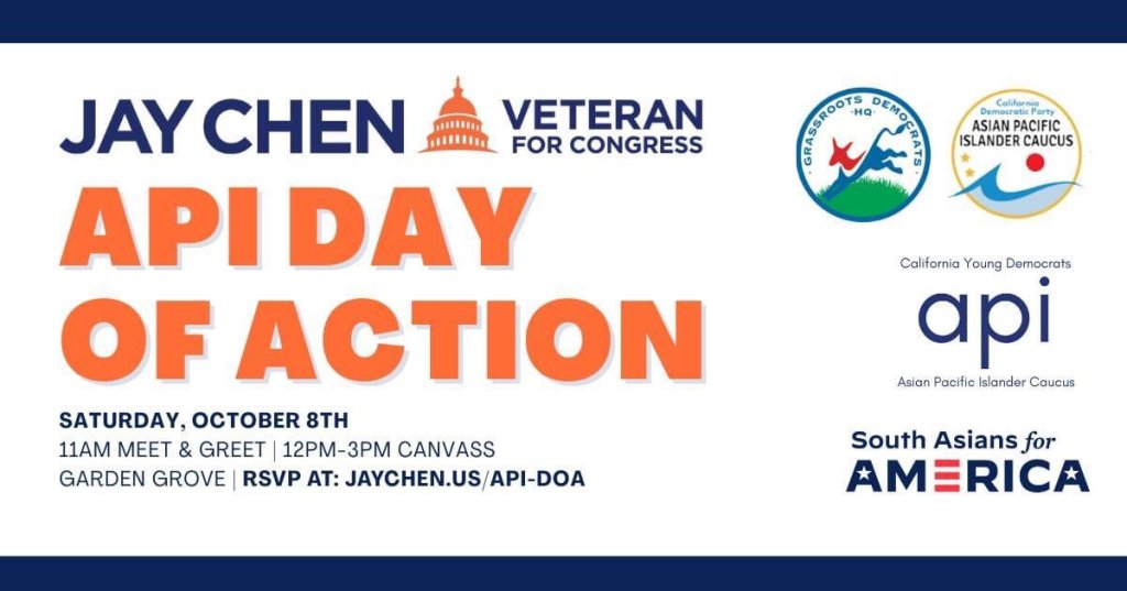 Jay Chen is also holding an API Day of Action on Sunday, August 28, with events in Cerritos and Westminster.